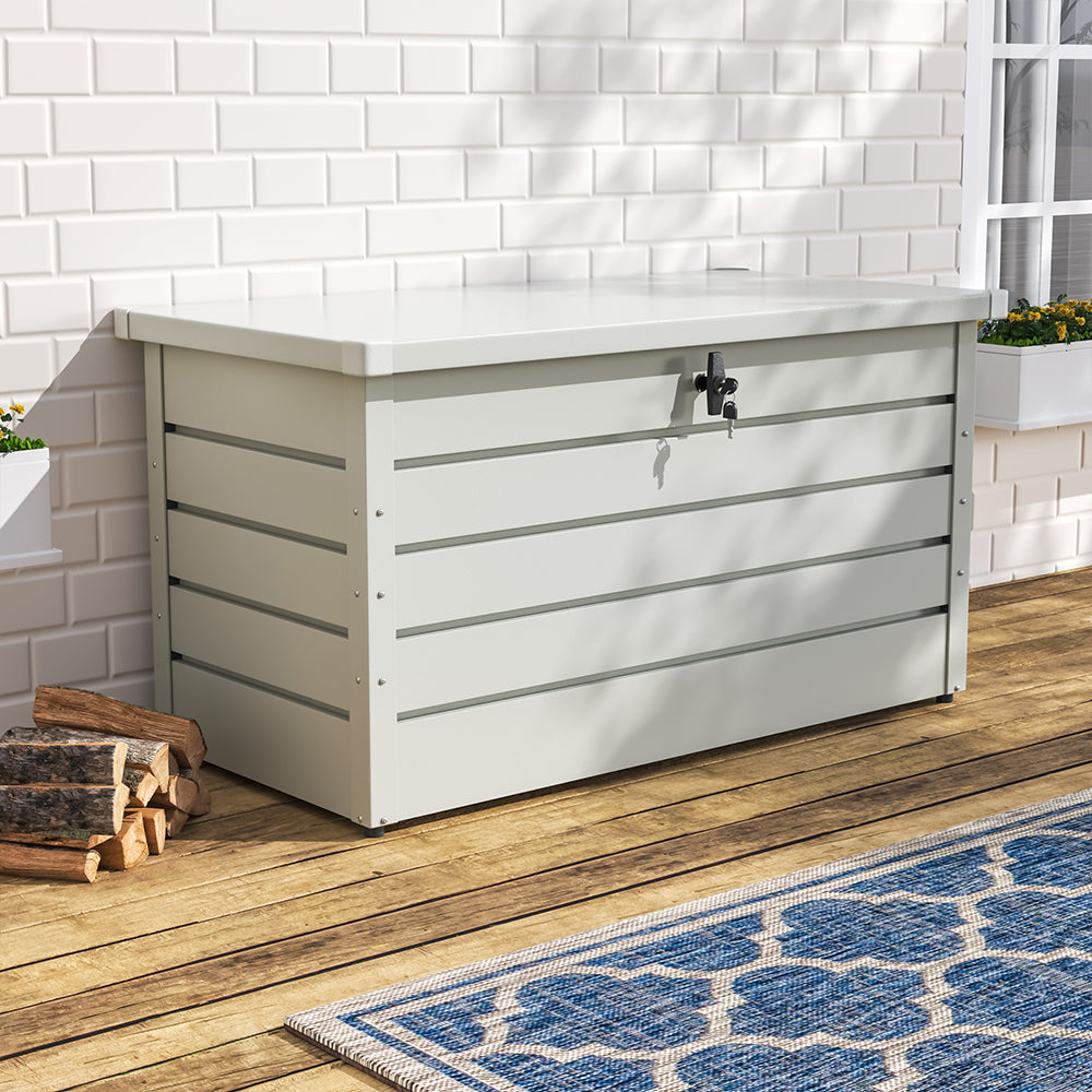 Looking for a smart way to keep your outdoor essentials organized and protected Check out this garden storage box! It's lockable, keeping your items safe from unpredictable weather, nosy animals, and little explorers. The built-in opening and closing mechanism ensures hassle-free access to your patio cushions, pool gear, and gardening tools. Now you can focus on enjoying your outdoor sanctuary by choosing this storage box, knowing everything you need is neatly stowed away and within reach.