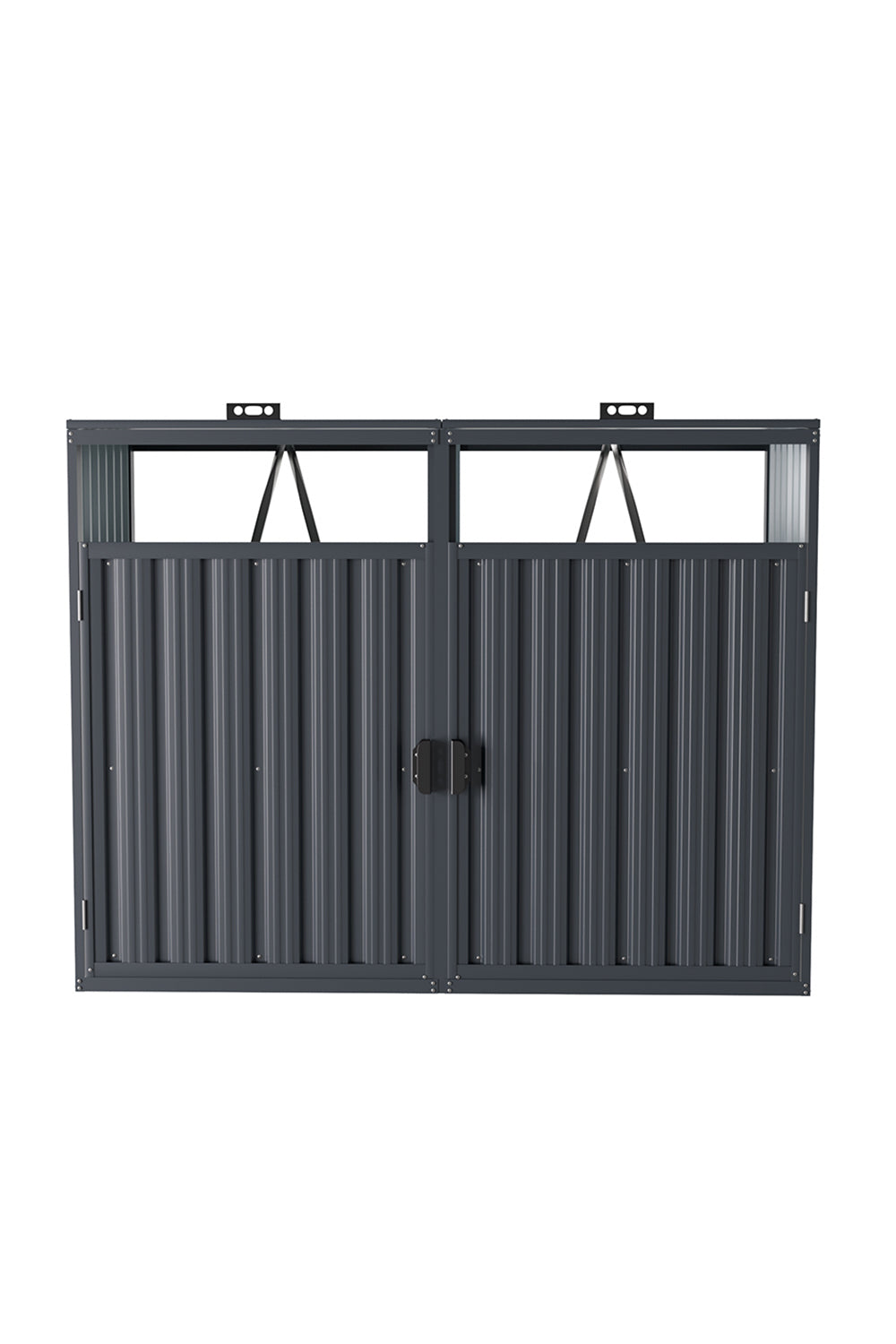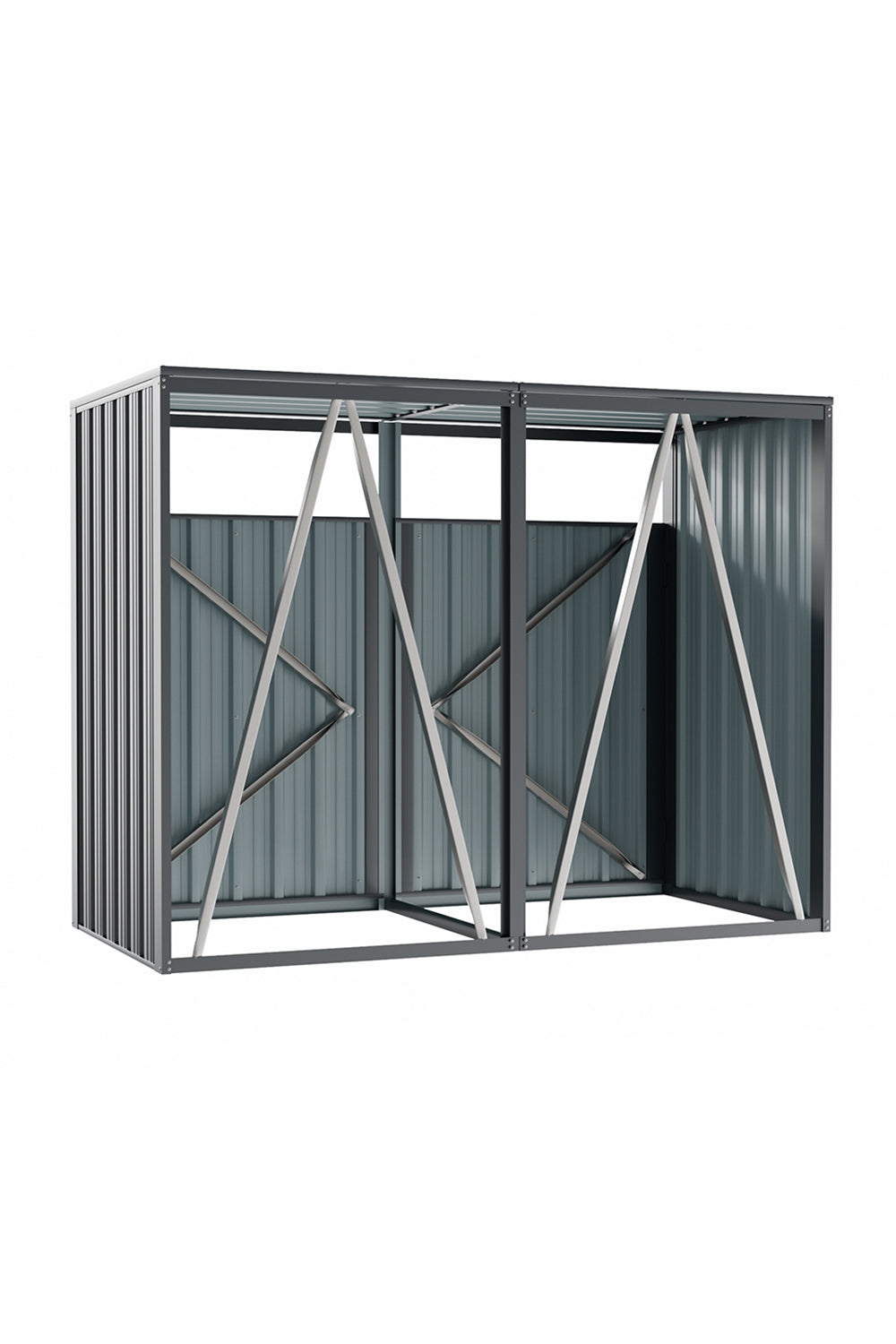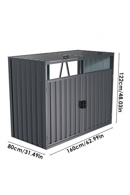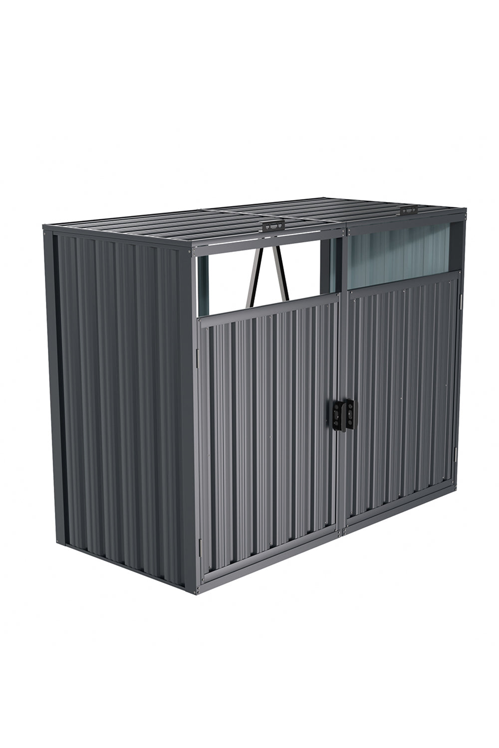 Keep your garden neat and tidy with this compact outdoor trash can. Made from galvanized steel with a dark grey coating, it resists corrosion and rust while blending seamlessly into your outdoor space. Featuring two front doors and two top doors with user-friendly handles, this storage shed accommodates two trash cans of any size. It discreetly hides your trash cans, enhancing the overall look of your garden.