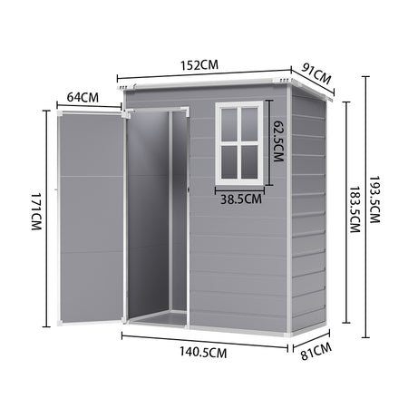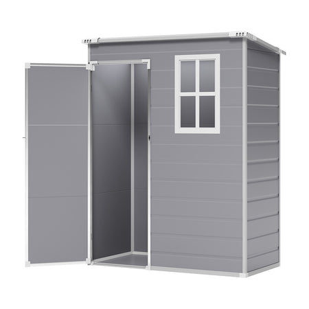 3x5ft Grey Plastic Lockable Outdoor Garden Tool Shed with Window