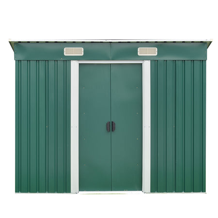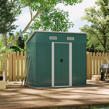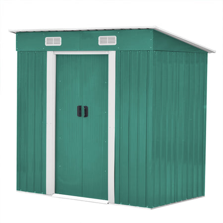 4x6ft Green Garden Metal Storage Tool Shed with Skillion Roof Top