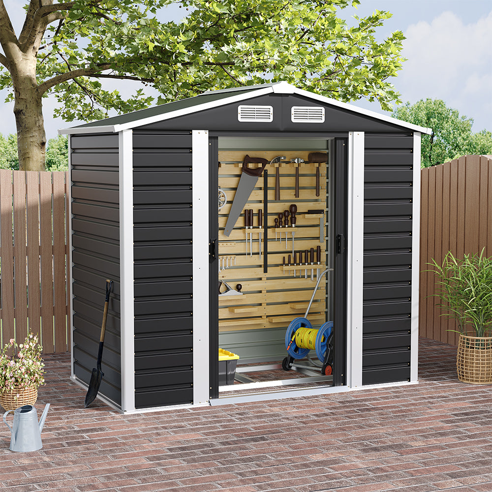 4x7ft Charcoal Black Outdoor Garden Tool Storage Shed