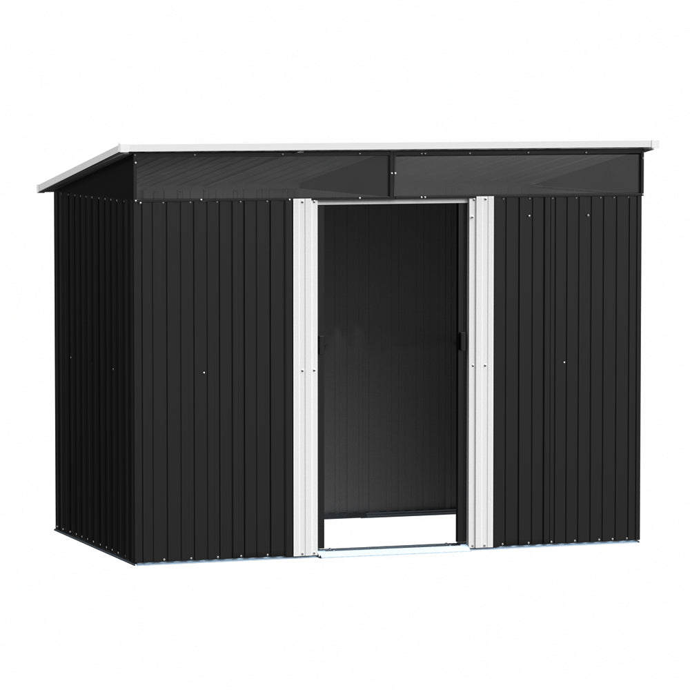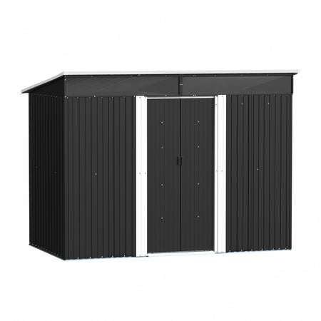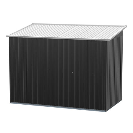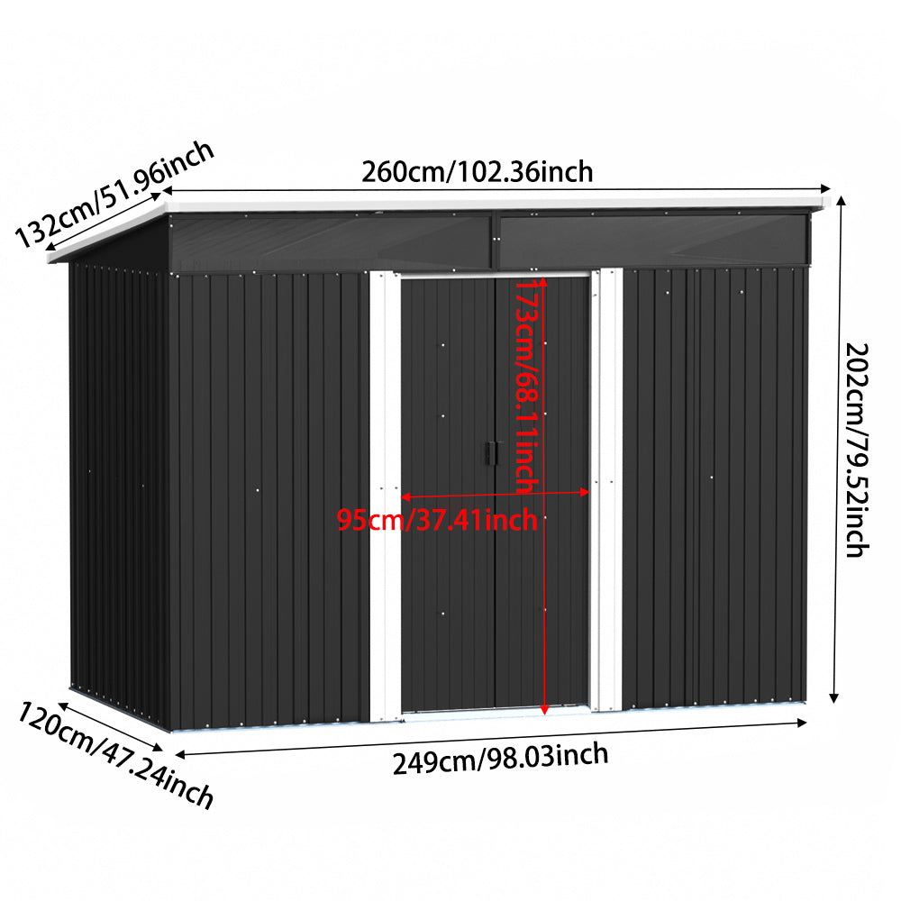 4x8ft Black Metal Garden Storage Shed with Lockable Sliding Doors