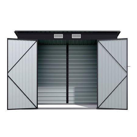 4x8ft Black Outdoor Galvanized Steel Storage Shed with Dual Doors