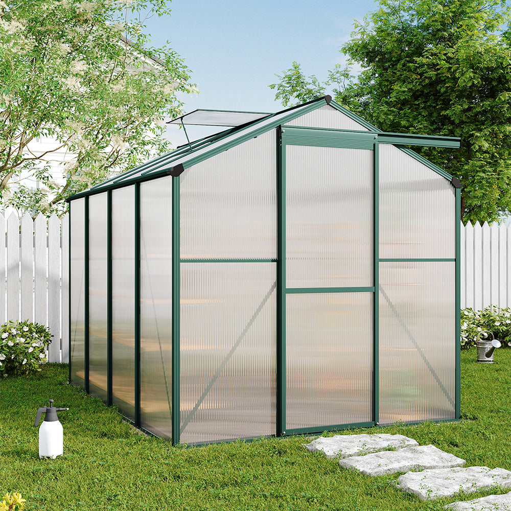 6*8ft Green Framed Aluminium Greenhouse with Window Opening