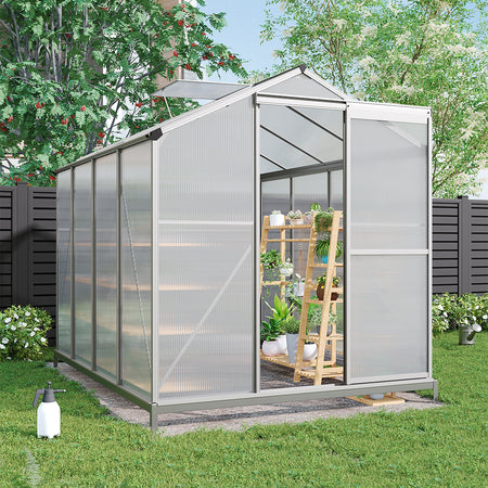 6ft W Aluminum Framed Greenhouse with Base and Window Opening