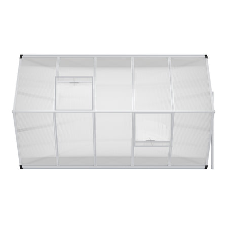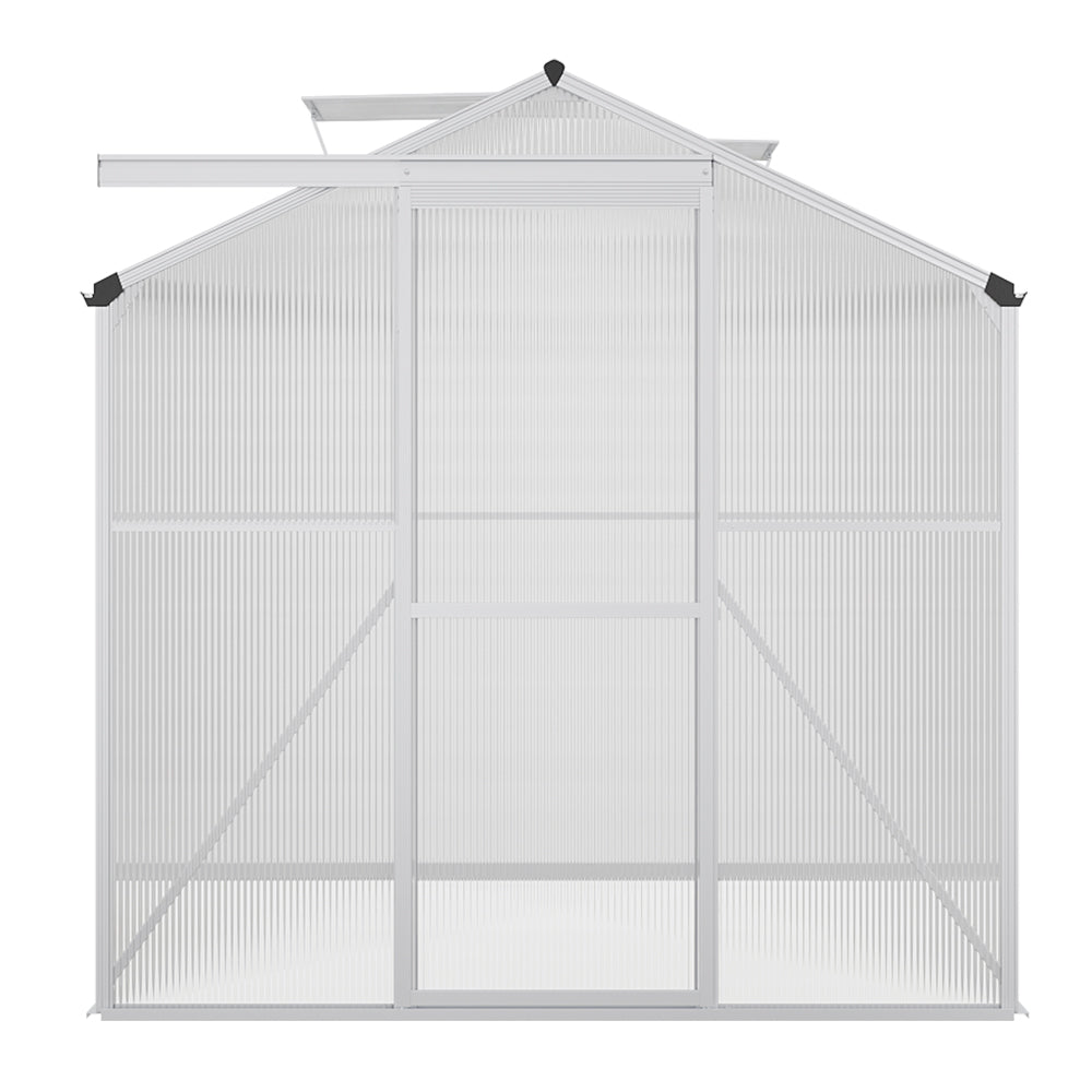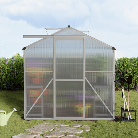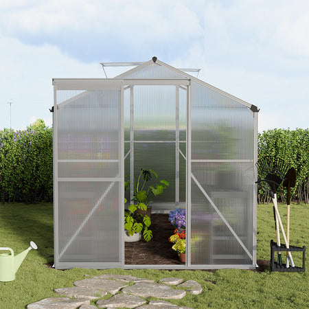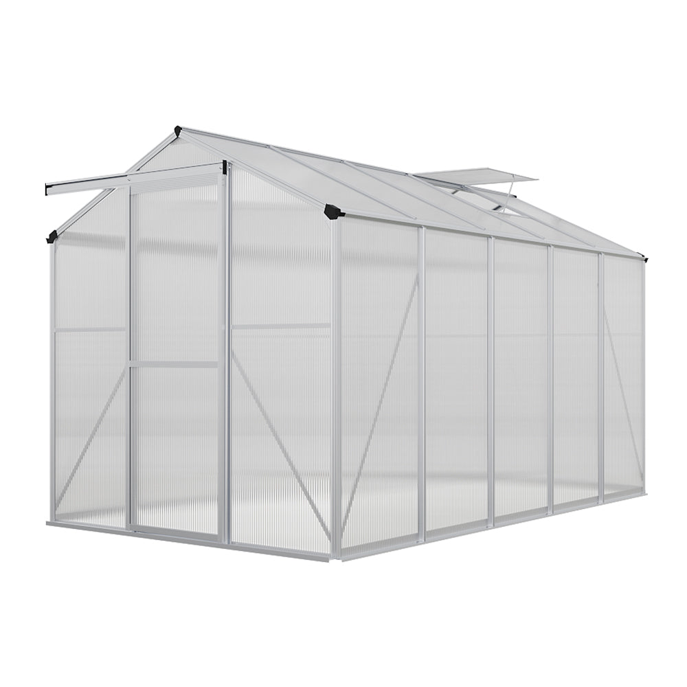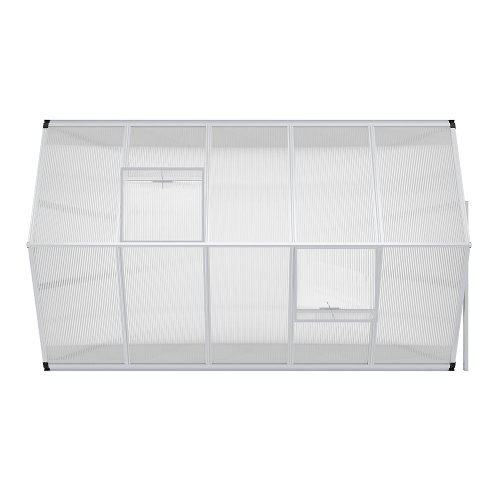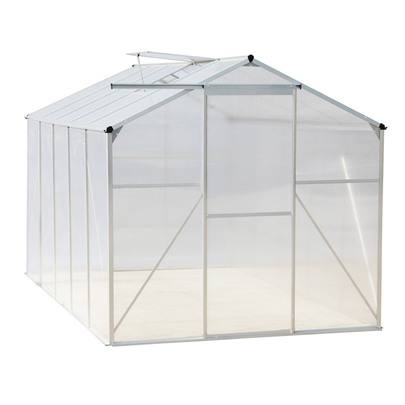 This frame of this practical greenhouse is built from superior aluminium, which lays the foundation of the upright and sturdy structure. The polycarbonate-made panels are semi-transparent, which allow you to check on the plants from time to time. To make sure that the inner environment is in the best condition, the greenhouse is paired with 2 window openings. An impressive greenhouse for a planting lover like you.