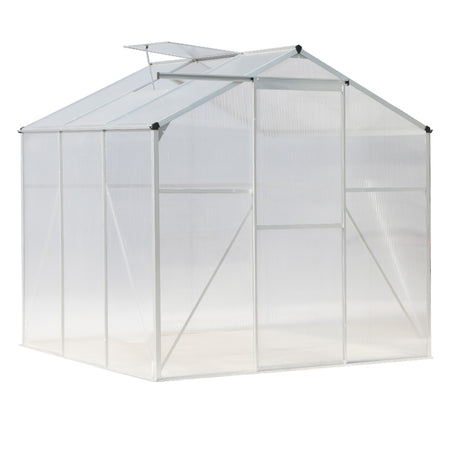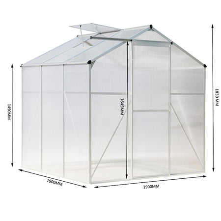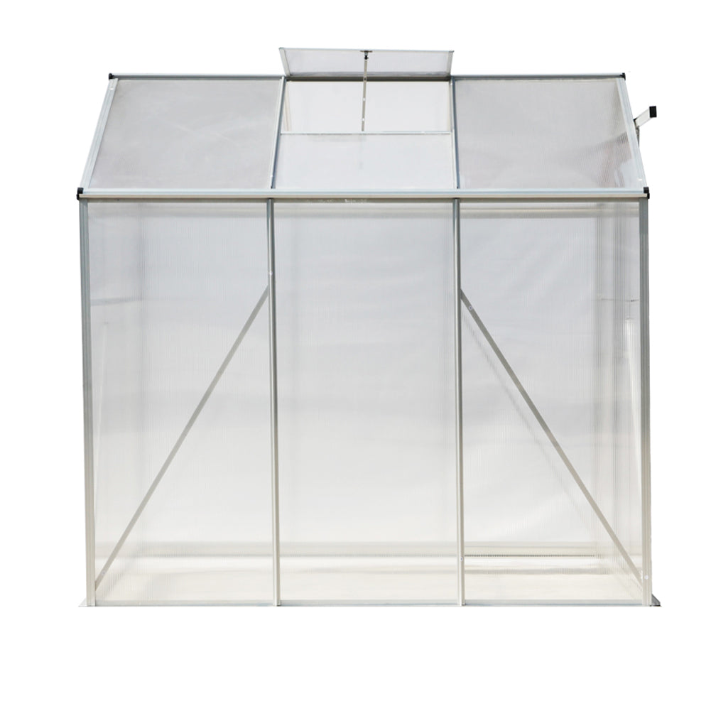This frame of this practical greenhouse is built from superior aluminium, which lays the foundation of the upright and sturdy structure. The polycarbonate-made panels are semi-transparent, which allows you to check on the plants from time to time. To make sure that the inner environment is in the best condition, the greenhouse is paired with a window opening. An impressive greenhouse for a planting lover like you.