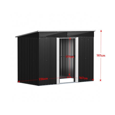 6x8ft Black Metal Garden Storage Shed with Lockable Sliding Doors