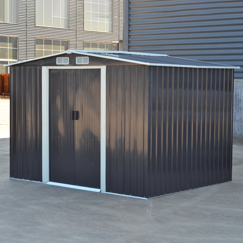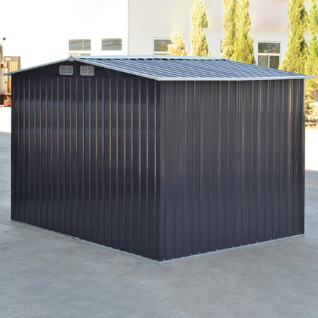6x8ft Black Steel Garden Storage Shed with Gabled Roof Top