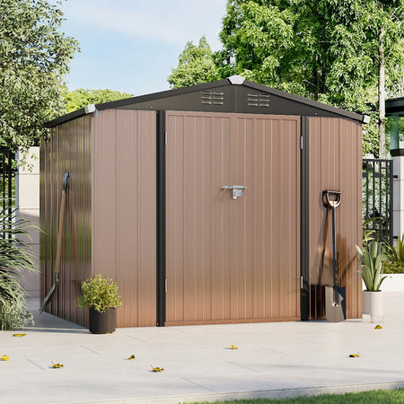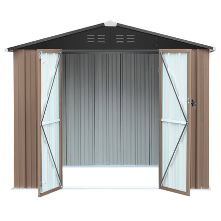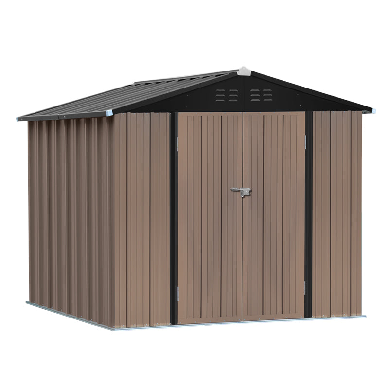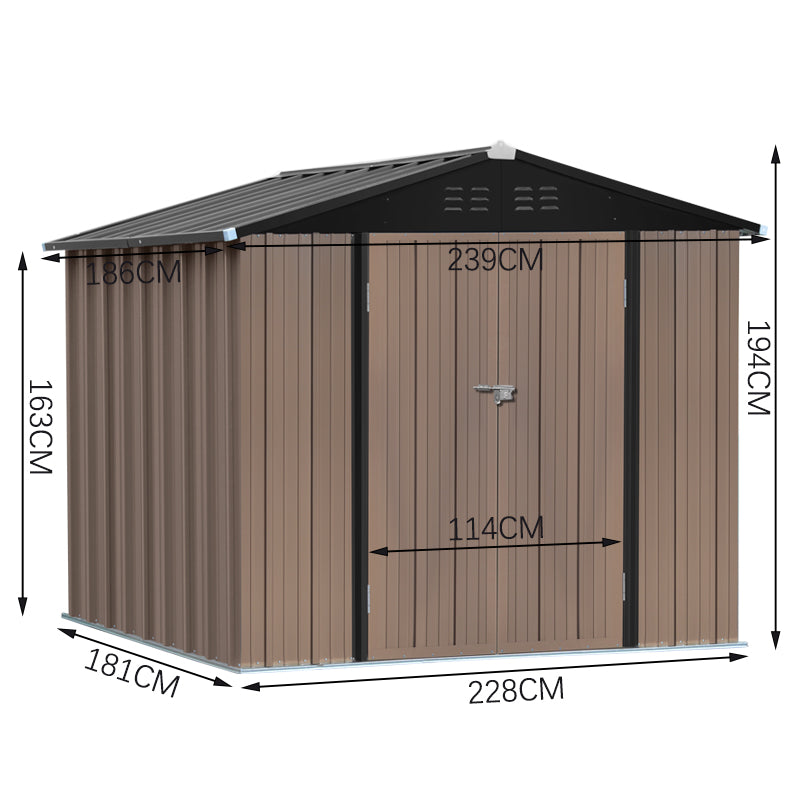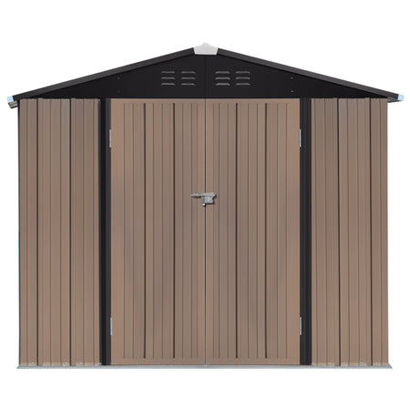 6x8ft Brown Large Galvanized Steel Lockable Apex Metal Shed