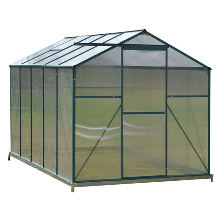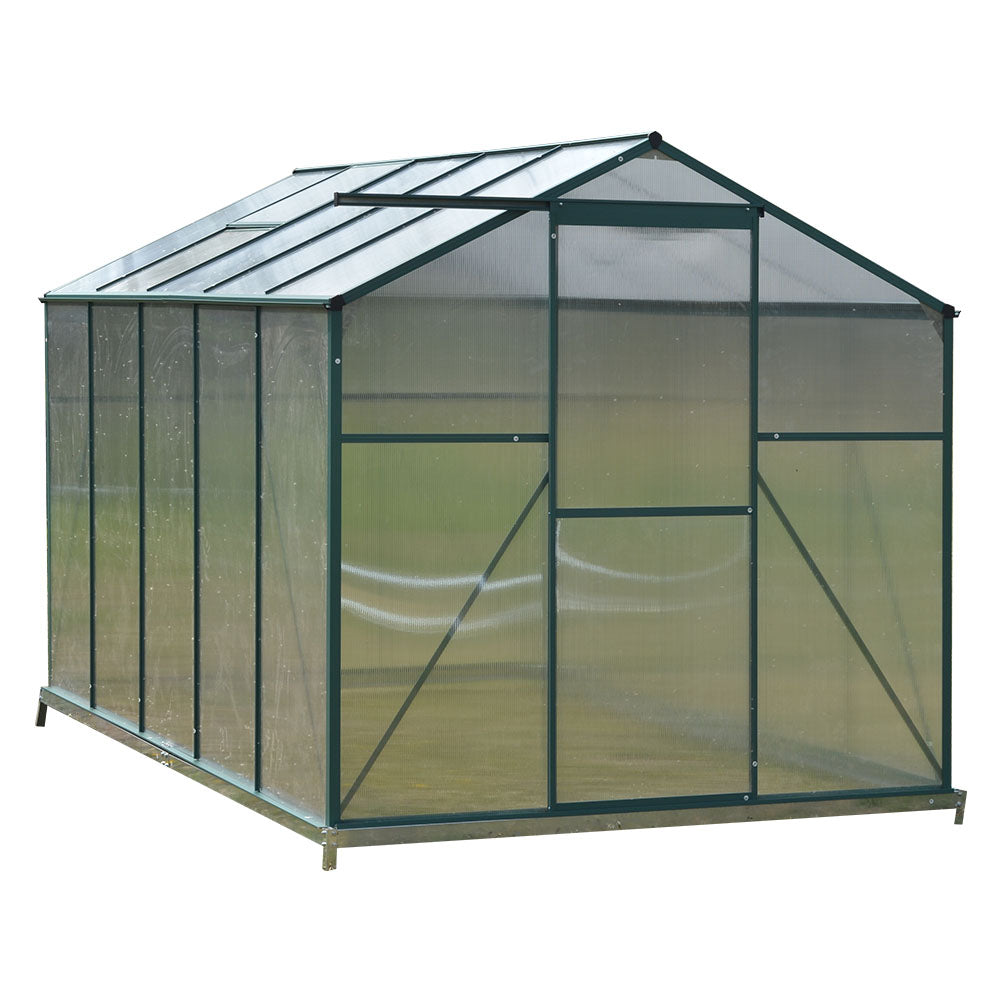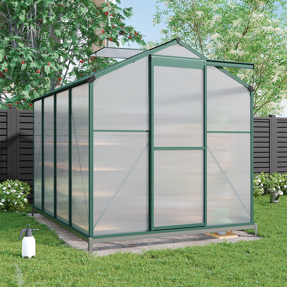 6x8ft Green Framed Aluminium Greenhouse with Window Opening and Base