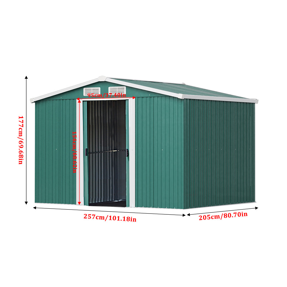6x8ft Green Steel Garden Storage Shed with Gabled Roof Top