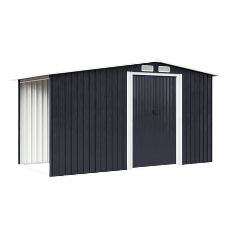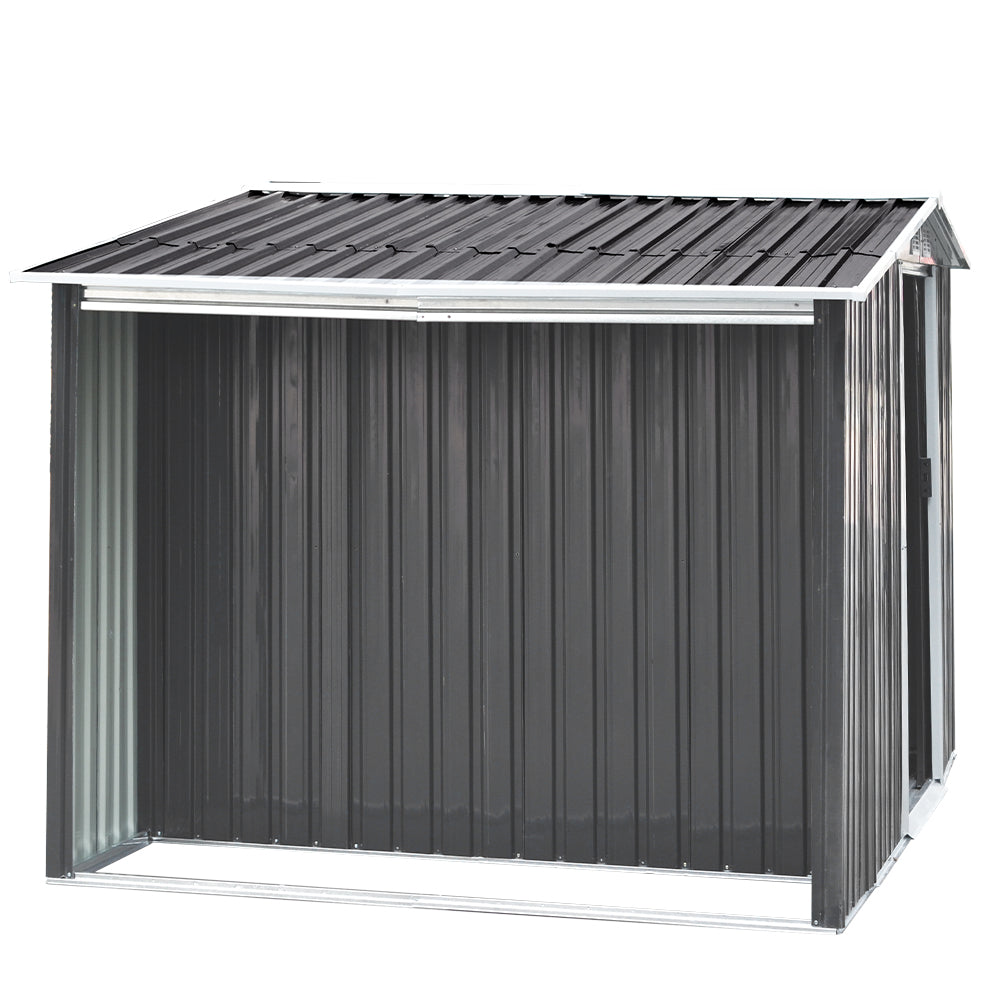 6x8ft Black Galvanized Steel Garden Storage Shed with Log Storage